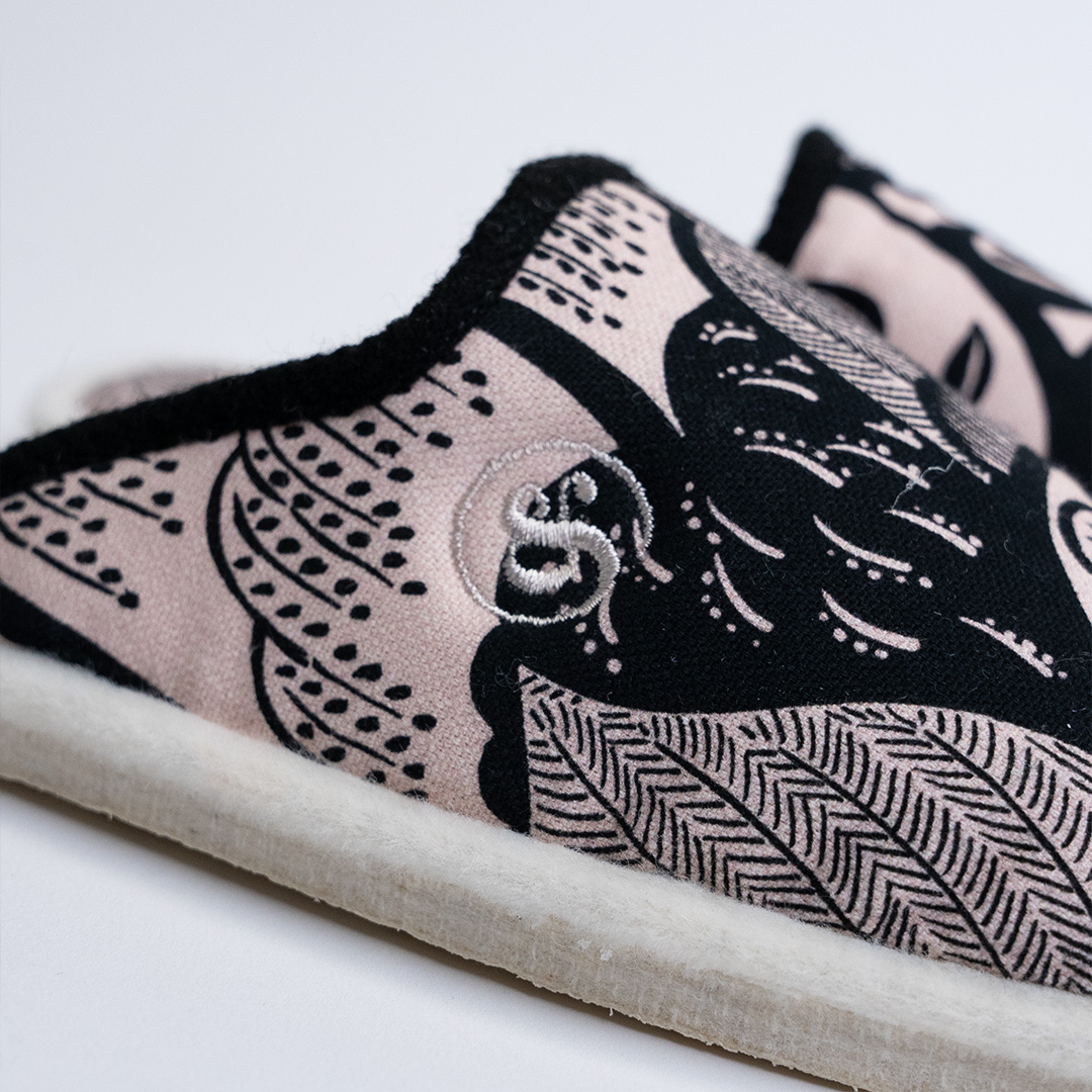 Mules laine à motif asiatique noir & blanc